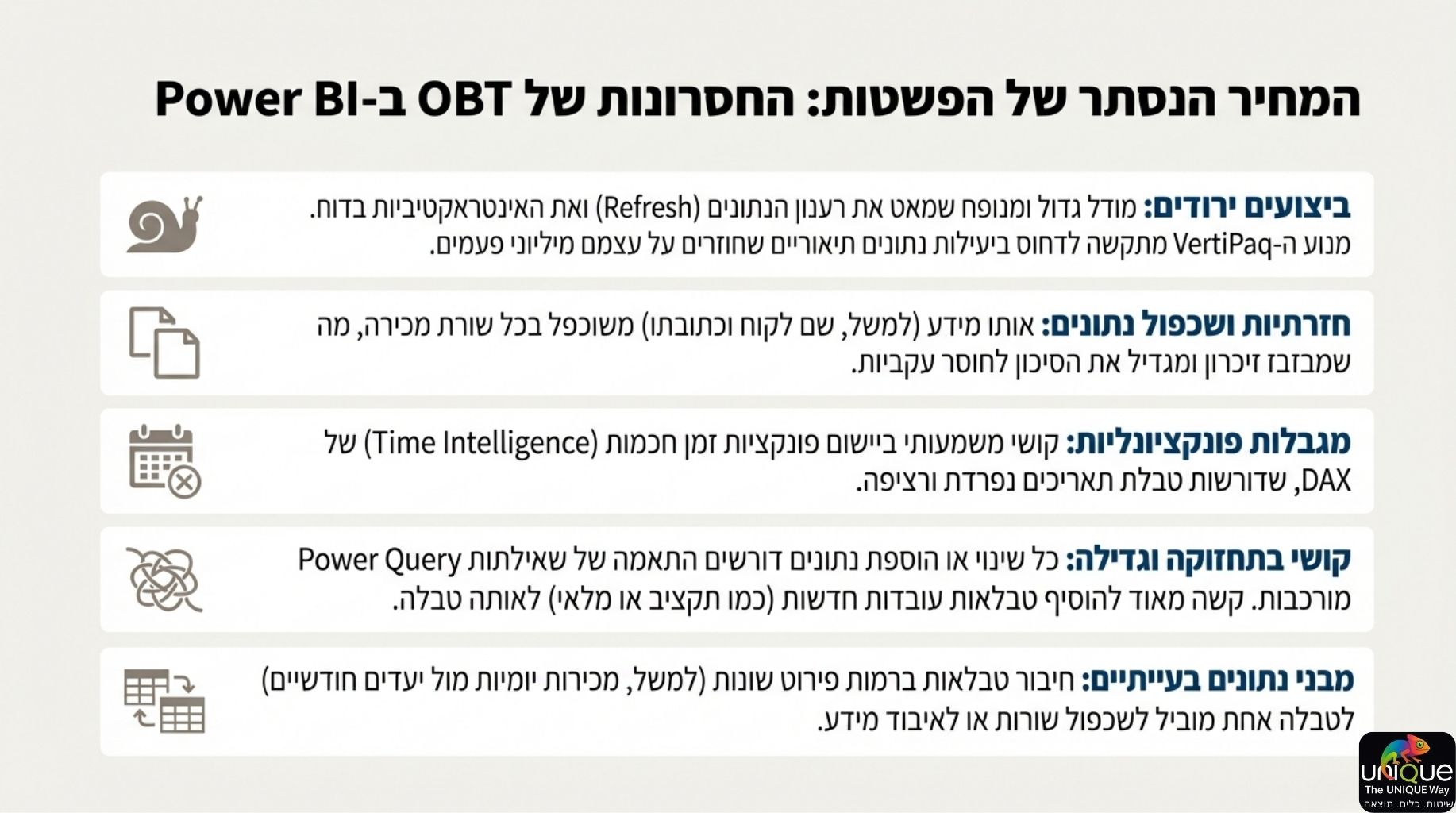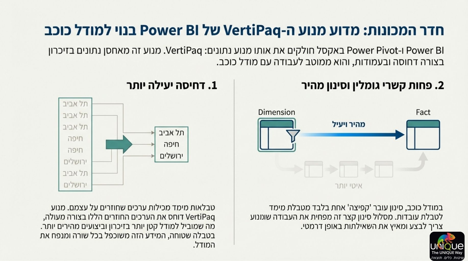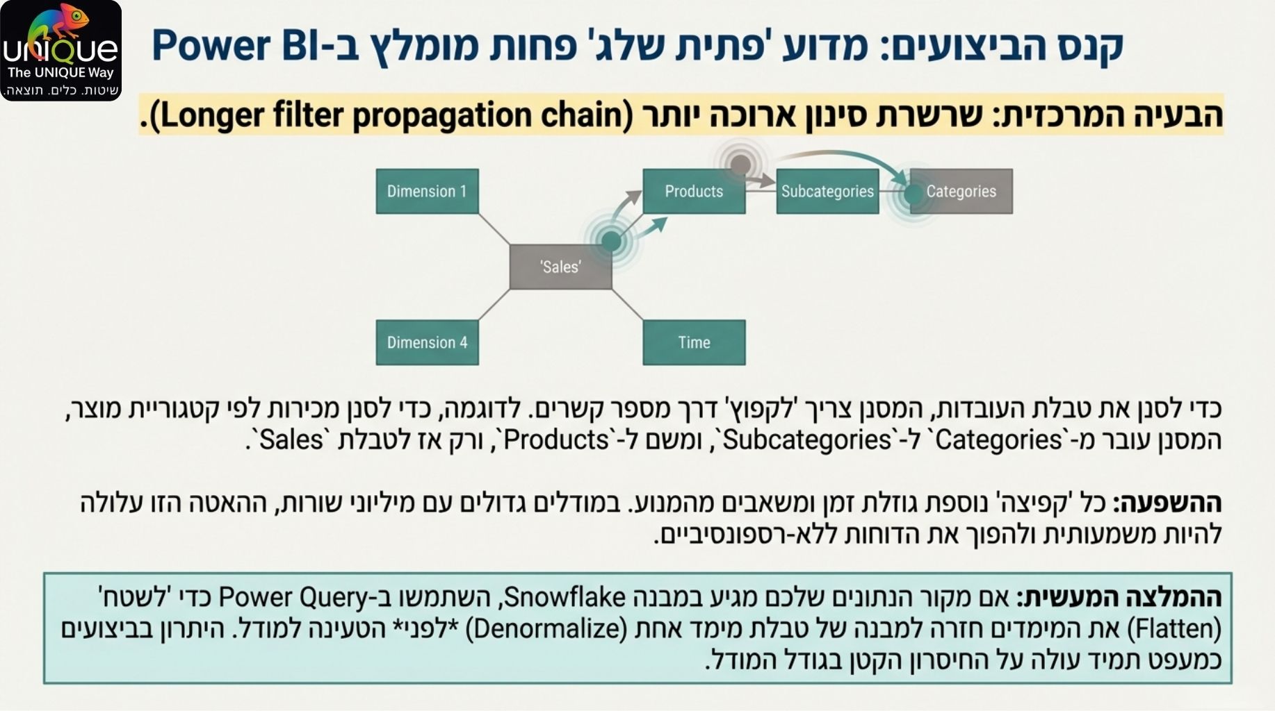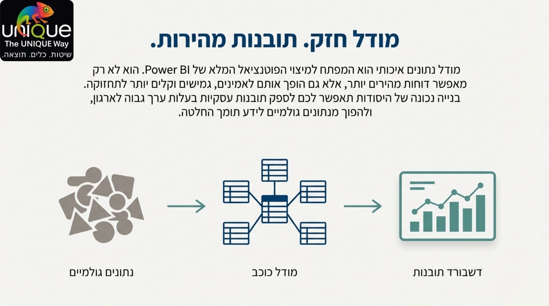 הצלחה ב-Power BI מתחילה ונגמרת במודל הנתונים. מודל נכון אינו רק עניין טכני – הוא יתרון עסקי המאפשר ביצועים מהירים, נוסחאות DAX אמינות וחוויית משתמש משופרת.