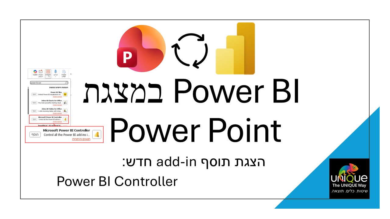 Power BI מאפשר לשלב דוחות ויזואליזציות אינטראקטיביות בתוך שקופיות PowerPoint כדי לתמוך בסיפורים מבוססי נתונים בארגון . ככל שהשימוש גדל, משתמשים נתקלים בצורך לנהל ולעדכן מספר תוספים במצגת אחת בצורה מרכזית במקום לעבור שקופית אחר שקופית ולבצע את אותן הפעולות שוב ושוב .. Power BI Controller נוצר כדי לענות על הצורך הזה ולהקל על עדכונים תקופתיים של מצגות שמכילות דוחות מרובים .