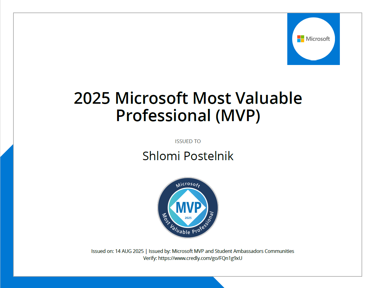 מייקרוסופט בחרו להאריך לשלומי פוסטלניק את תואר ה MVP לעוד שנה, שנה רביעית ברציפות, בתחום אקסל EXCEL