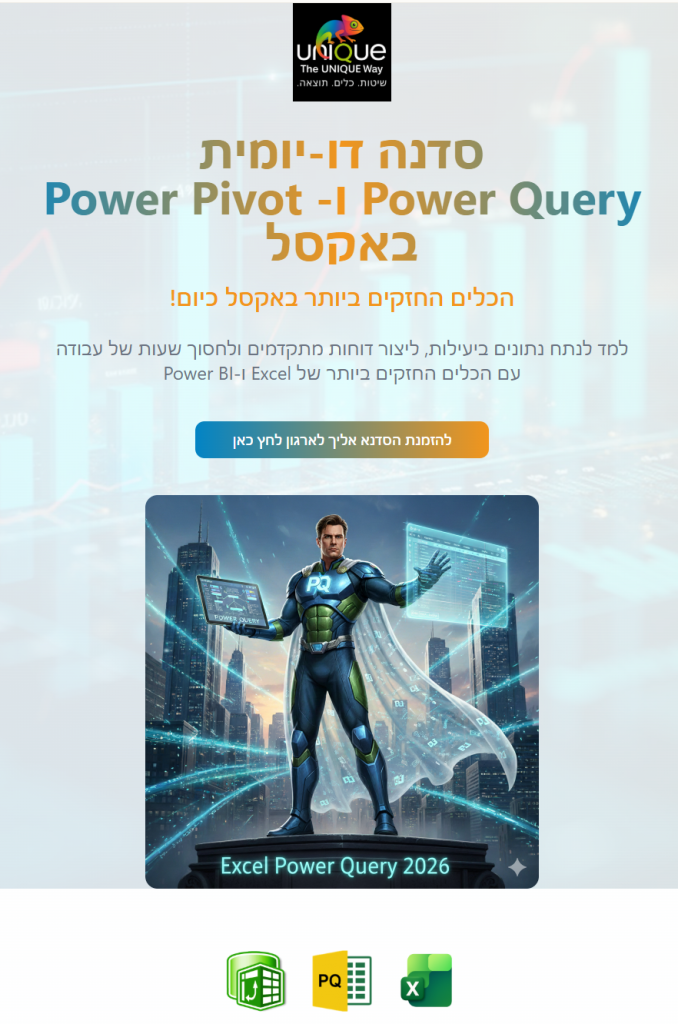 סדנה דו יומית אצלך באירגון – על Power Query ו- Power Pivot -הכלים הכי חזקים שקיימים באקסל