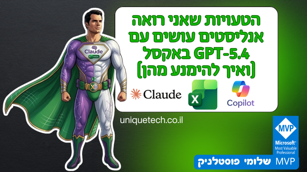 אני עובד עם אקסל מ-1995. שלושים שנה של VLOOKUP, INDEX/MATCH, מערכים, Power Query ו-DAX. כל כלי שמיקרוסופט הוסיפה למדתי ולימדתי. ואז ב-5 במרץ 2026 OpenAI שחררה את GPT-5.4 ואת ChatGPT for Excel, ותוך שבועיים התחלתי לראות דפוס של טעויות שחוזרות על עצמן אצל אנליסטים מנוסים. הנוסחאות לא מתו, הן עדיין פה. אבל הדרך שבה אנליסט […]